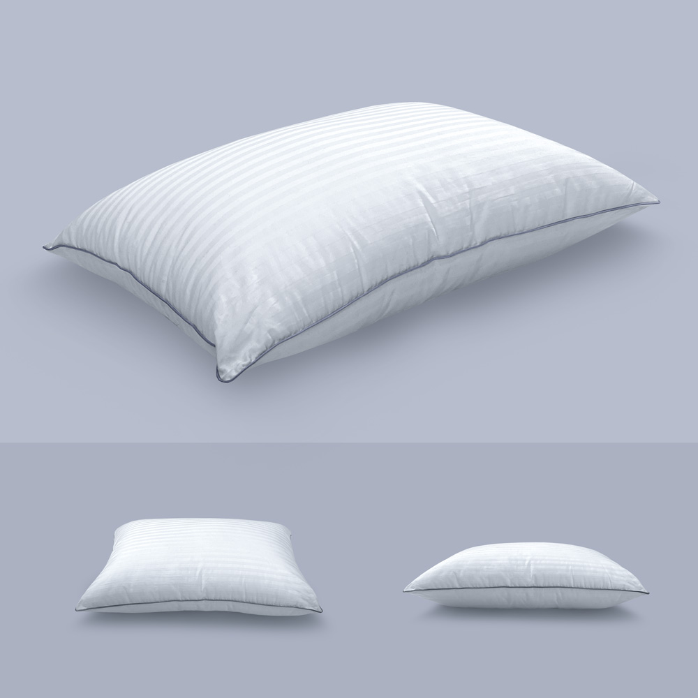 Классическая подушка с наполнителем из искусственного лебяжьего пуха в натуральном хлопковом чехле.